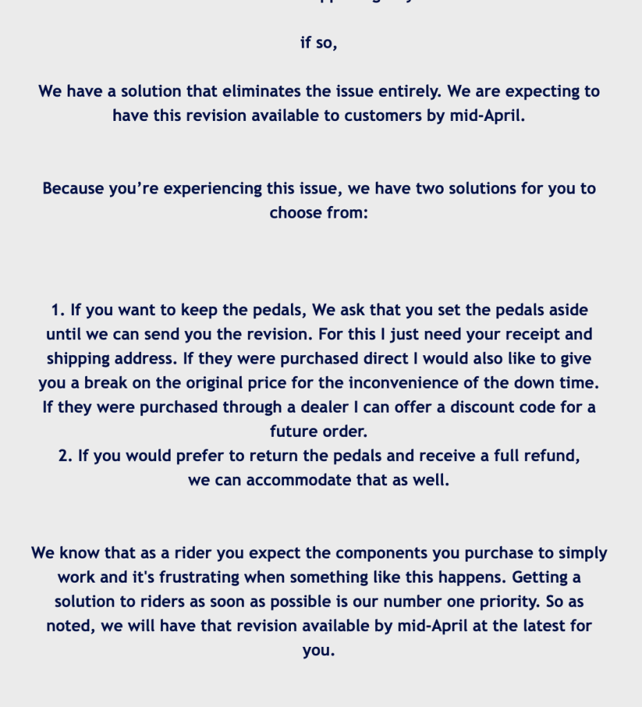 I wish bike companies would be willing to publicly say “We fucked up, we’re sorry, we’ll make it right.”